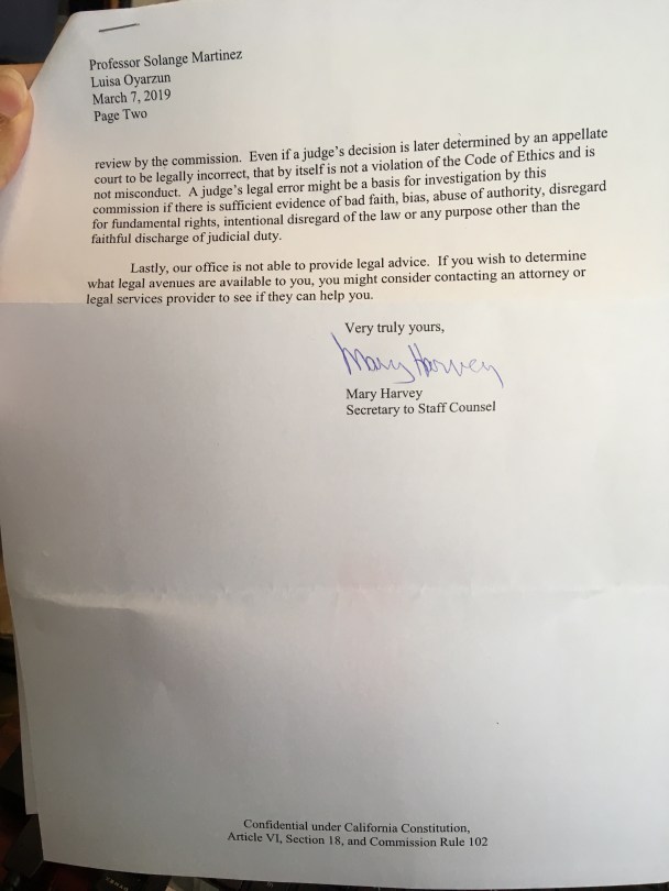 LETTER FROM THE COMMISSION ON JUDICIAL PERFORMANCE, ANSWERING OUR COMPLAINTS AGAINST TANIA’S JUDGE-PG 2 March 12, 2019 3024 × 4032 LETTER FROM THE COMMISSION ON JUDICIAL PERFORMANCE, TO PROF. MARTINEZ & HER ELDERLY, DISABLE MOTHER. SENT YOURS & COMPLAINT AGAINST TYRANT, ABUSIVE JUDGE STEPHEN V. MANLEY, WHO ILLEGALLY INCARCERATED TANIA MCCASH, A MOTHER OF THREE (SCHEDULED FOR ASSASSINATION). Share this:Share Click to share on X (Opens in new window) X Click to share on Facebook (Opens in new window) Facebook Like Loading...